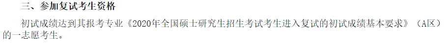 复试的初试成绩基本要求》(A区)的一志愿考生。