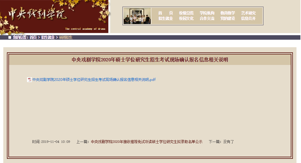 中央戏剧学院2020拼搏在线官网现场确认时间:11月8日至11月10日另附现场确认所需材料