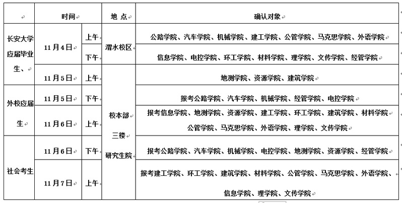 1、渭水校区现场确认时间:2019年11月4日,上午10: 00-16:00;
