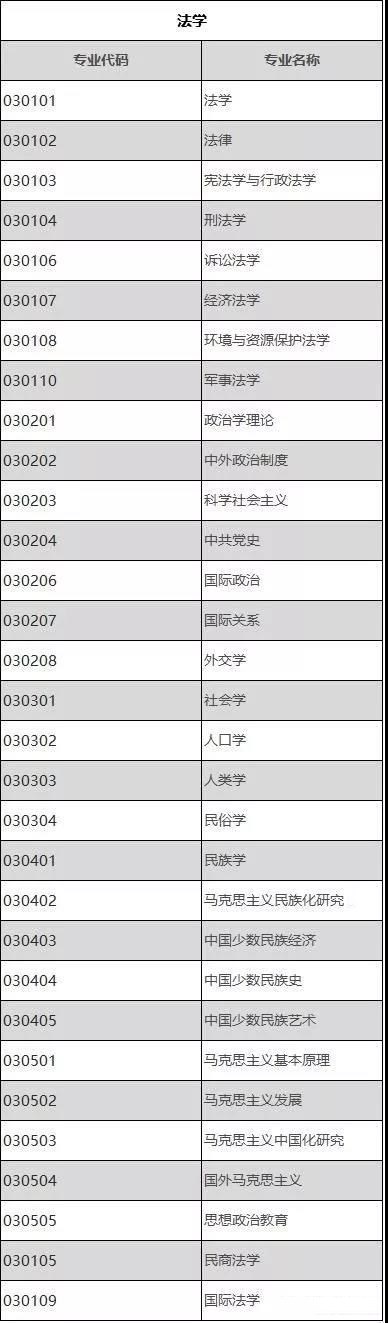 包含5个一级学科,31个二级学科,其中法学10个、政治学7个、社会学4个、民族学5个、马克思主义理论5个。法学门类中不考数学的专业有: