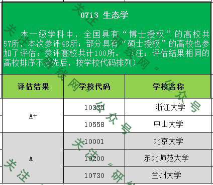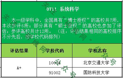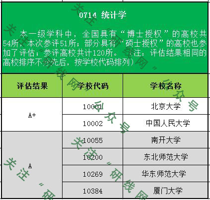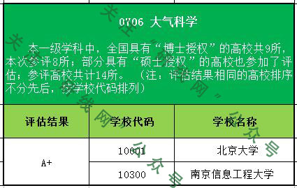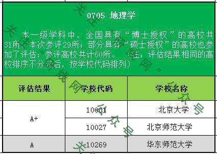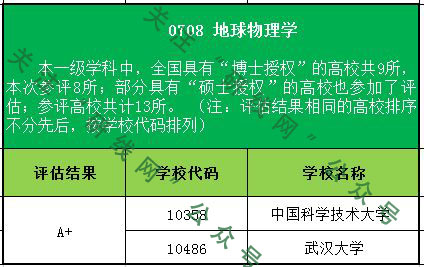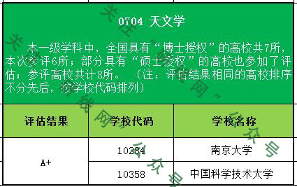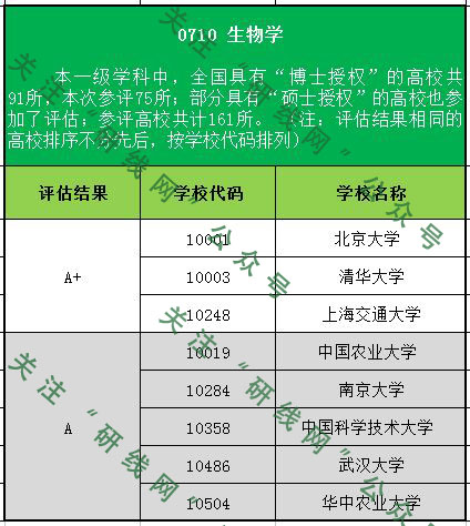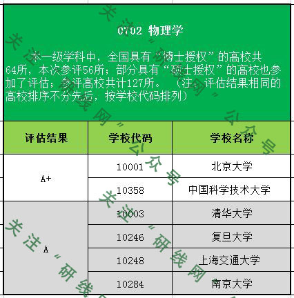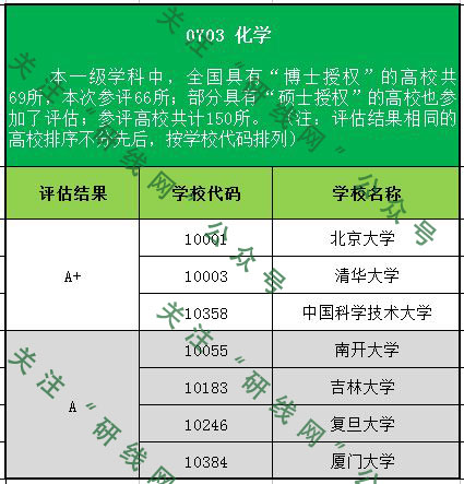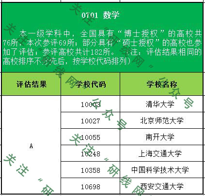 教育部学位与研究生教育发展中心于2017年12月28日公布全国第四轮学科评估结果,评估结果按“分档”方式呈现,其中理学学类学科高校评估结果为A及A以上等级的学校名称及代码如下: