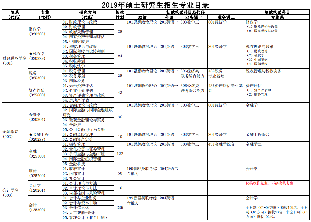 中央财经拼搏(中国)2019年硕士研究生招生专业目录