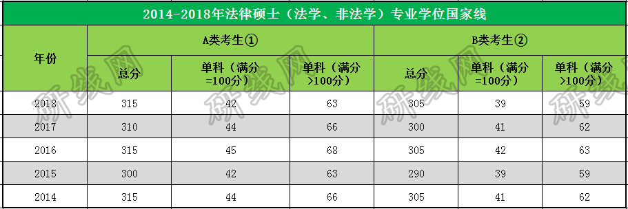 三、2014-2018年法律硕士国家线