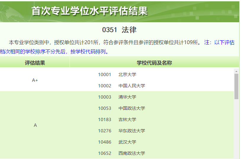 其中法律专业学位类别中,授权单位共计201所,符合参评条件且参评的授权单位共计109所。