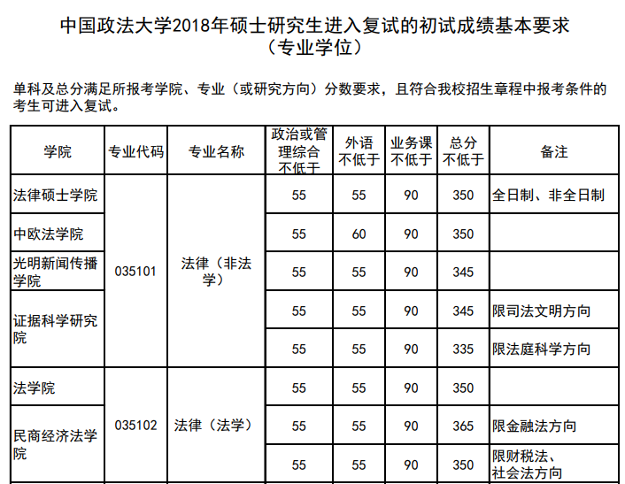图片来源:中国政法拼搏(中国) 2018 年初试成绩要求