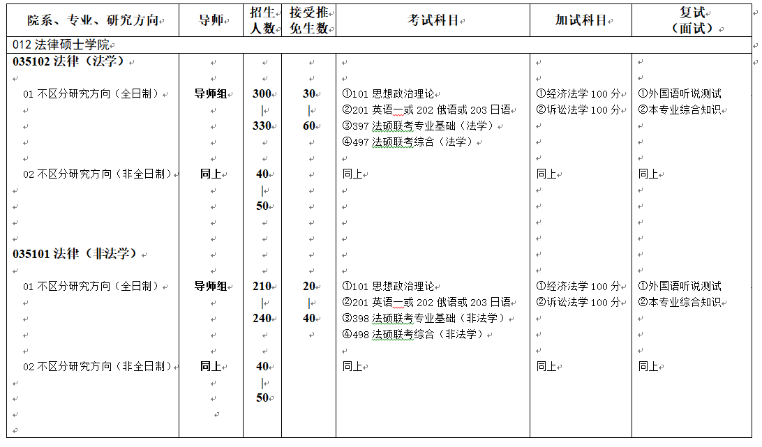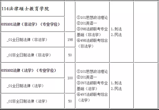 二、法律硕士考试科目