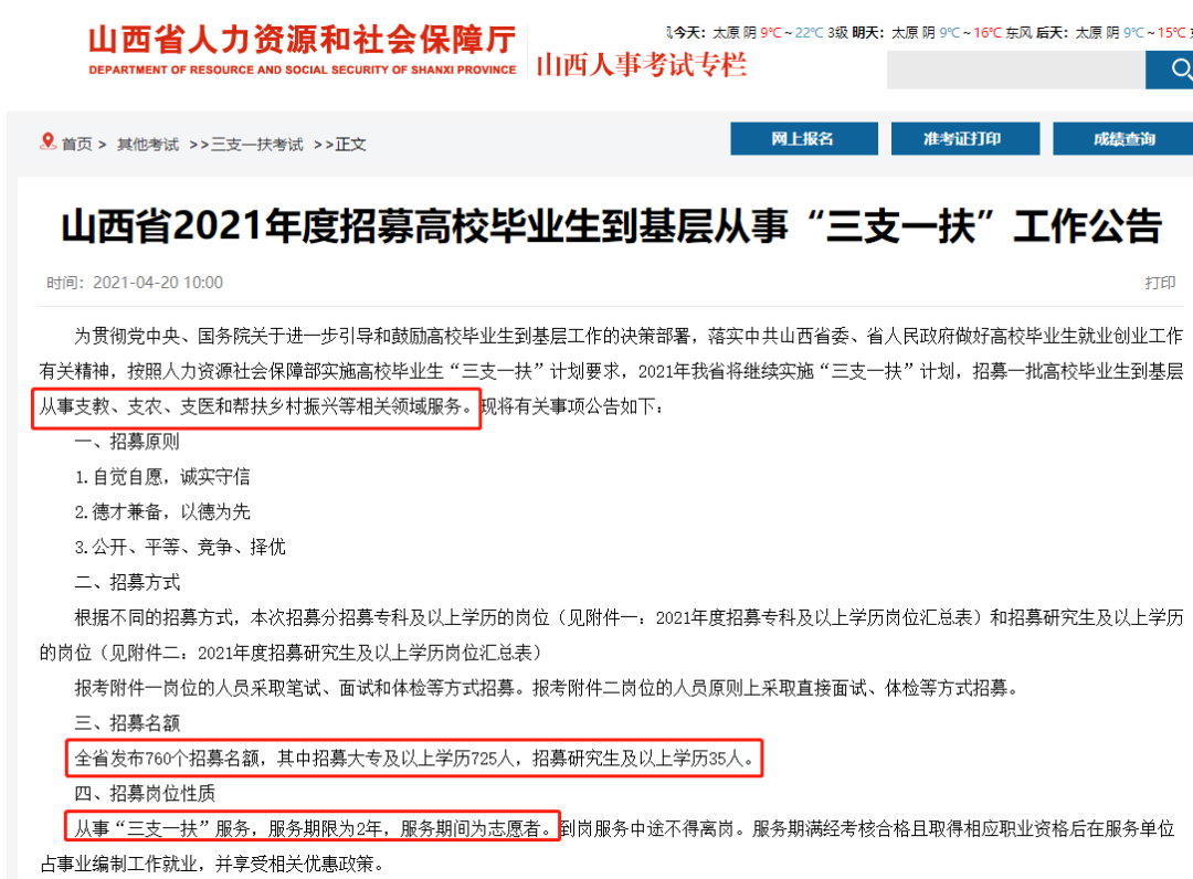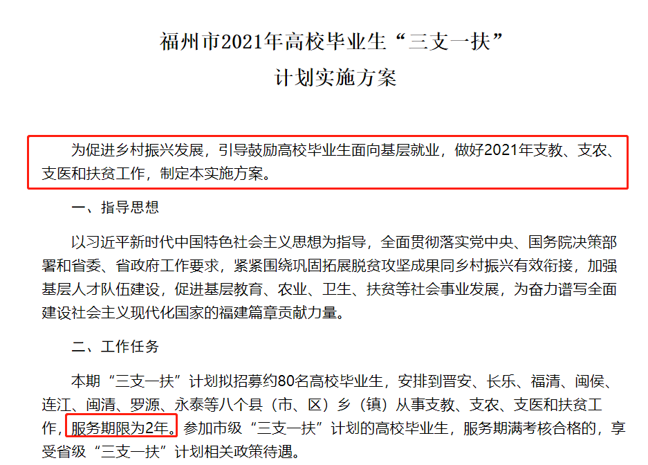 以下为山西省和福州市“三支一扶”2021年最新公告: