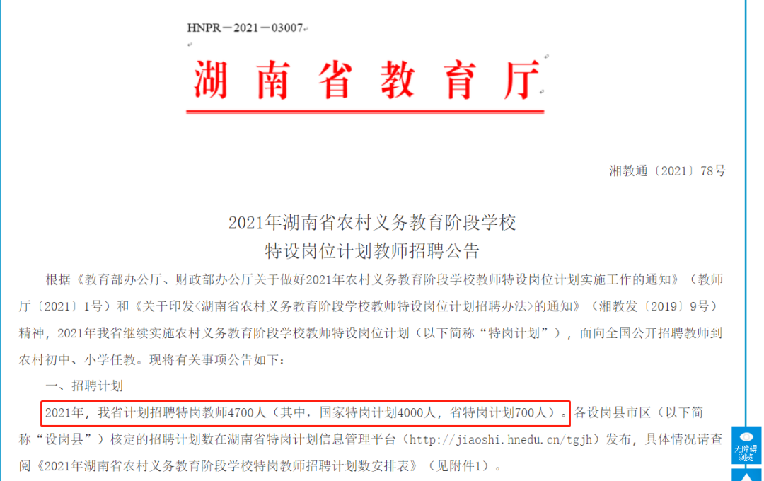 农村义务教育阶段学校教师特设岗位计划,简称“特岗计划”,国家公开招聘高校毕业生到中西部教师资源缺乏的县乡任教,为期3年。