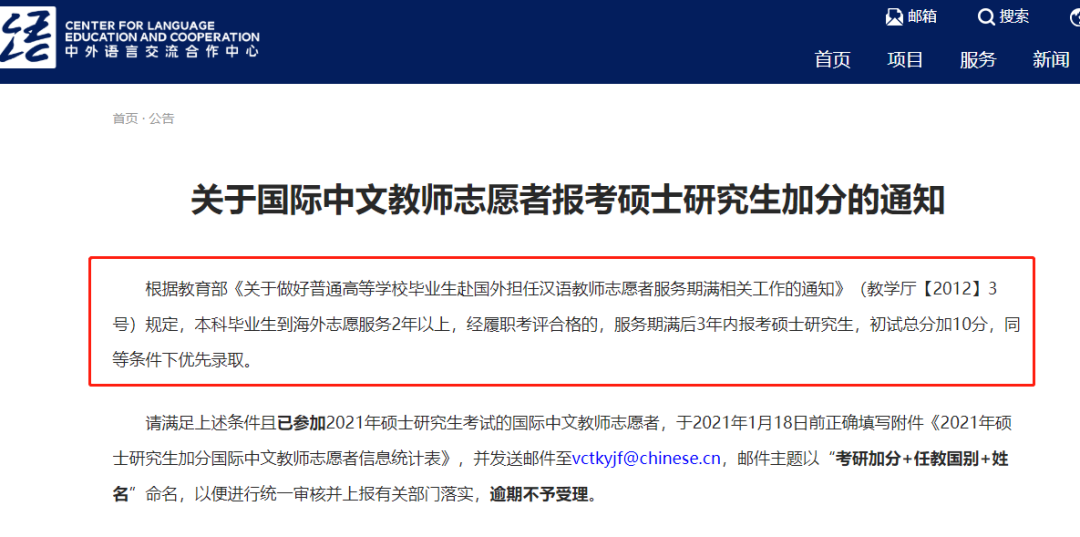 具体加分政策:“本科毕业生到海外志愿服务2年以上,经履职考评合格的,服务期满后3年内报考硕士研究生,初试总分加10分,同等条件下优先录取。”