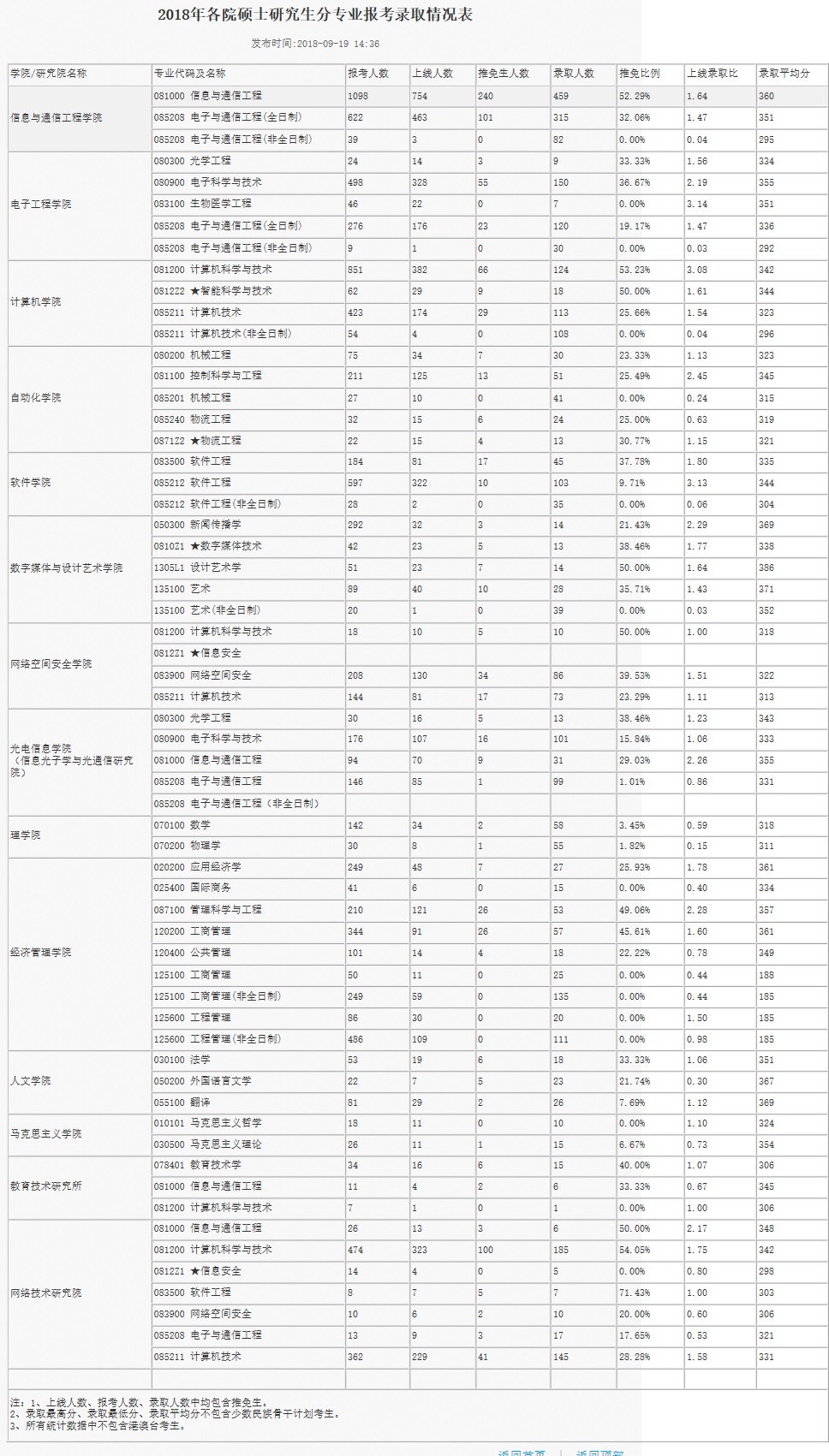 北京邮电拼搏(中国)2018年各院硕士研究生分专业报考录取情况表