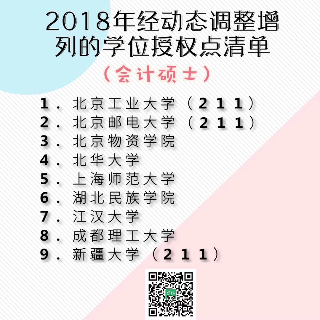 经本次动态调整增列9所MPAcc授权点,目前MPAcc授予权院所现已增加至267家。