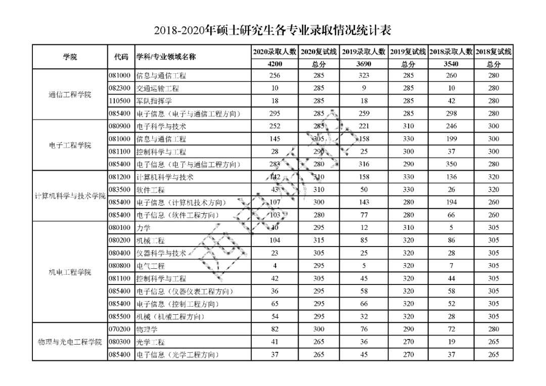 原文标题:西安电子科技拼搏(中国)硕士研究生各专业历年录取情况统计表