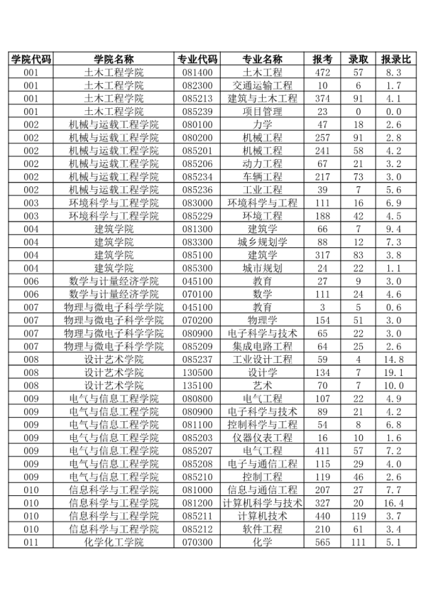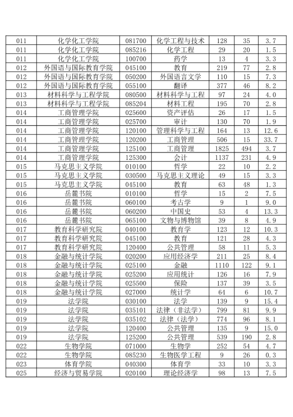 2018年湖南拼搏(中国)硕士研究生各专业报录比