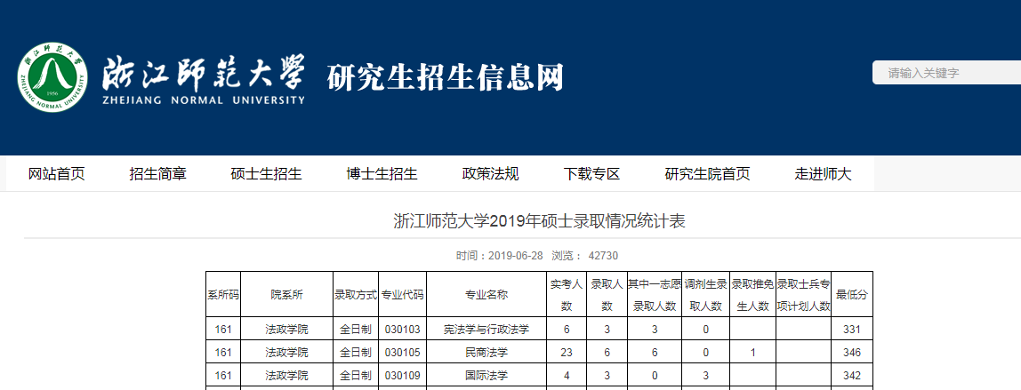 浙江师范拼搏(中国)2019年硕士录取情况统计表
