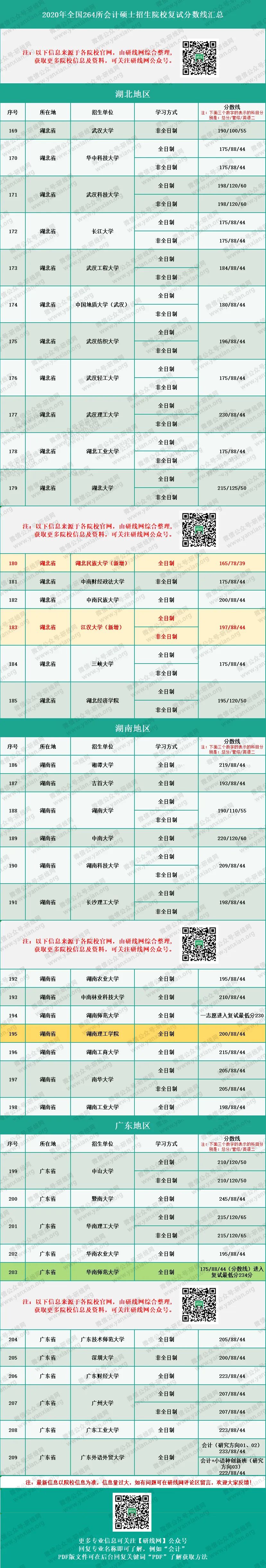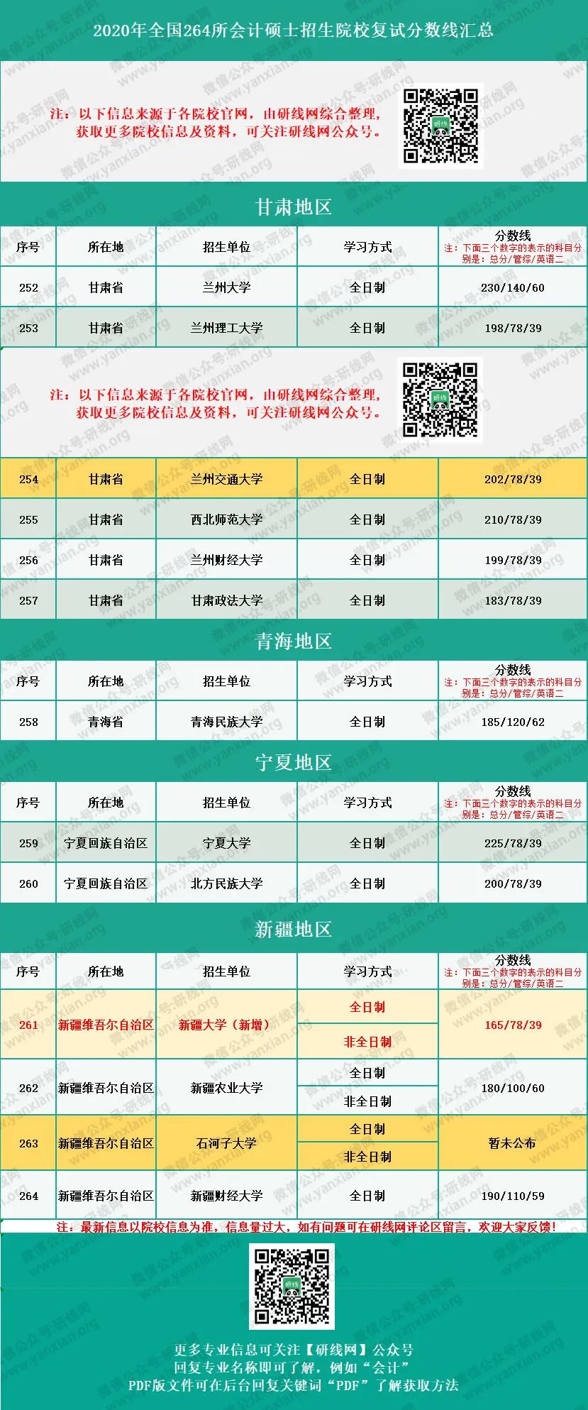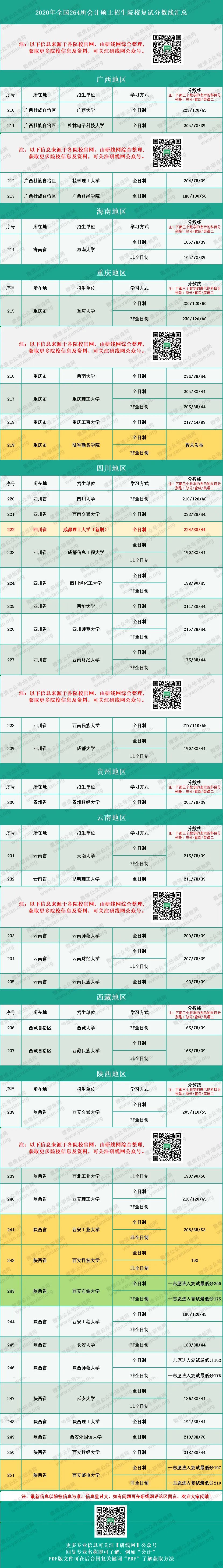 内容速递:2020年全国264所会计硕士MPAcc招生院校复试分数线汇总