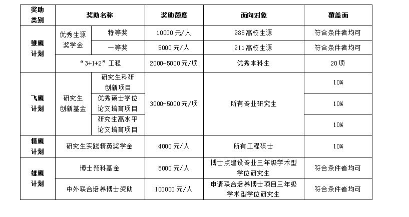2.学校同时实施“四鹰计划”,符合相关条件者均可申请相应奖助: