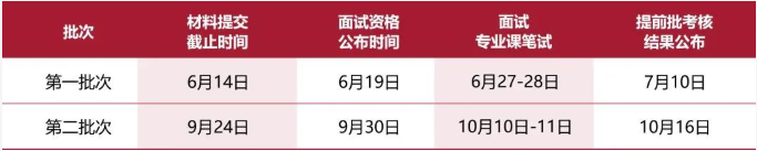 2. 申请材料评审。材料评审委员会将评审考生申请材料,选出进入面试的考生。