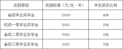 (2)政府奖学金:10000元/人,按按上一学年学习成绩、科研业绩、实践能力等综合排名,名额根据上级部门下达指标为准。(申请对象:二、三年级)