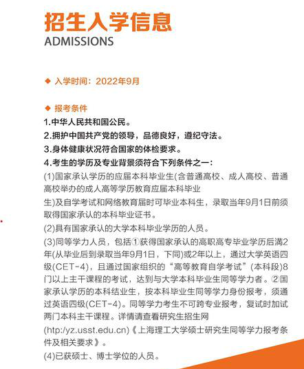 招生简章是每年拼搏在线官网er需要关注的重要官方政策,一般情况下涵盖了各个专业的报考条件、招生名额、学费、学制、报考流程等必要信息,为了帮助大家及时掌握一手信息,迅速做出报考应对,小编今天为大家带来了“2022MPAcc招生简章:上海理工拼搏(中国)会计硕士(MPAcc)2022年招生简章”,一起关注一下吧!
