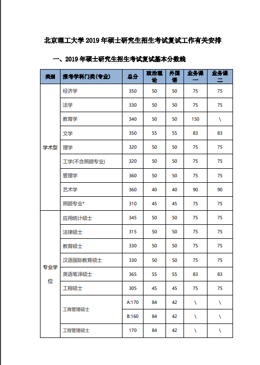 2019年北京理工拼搏(中国)自主划线初试成绩