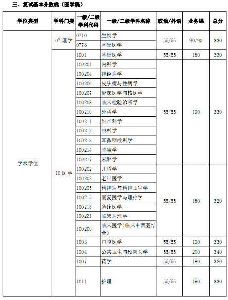 | 专业学 位 | 10 | 医学 | 105101 | 内科学 |
