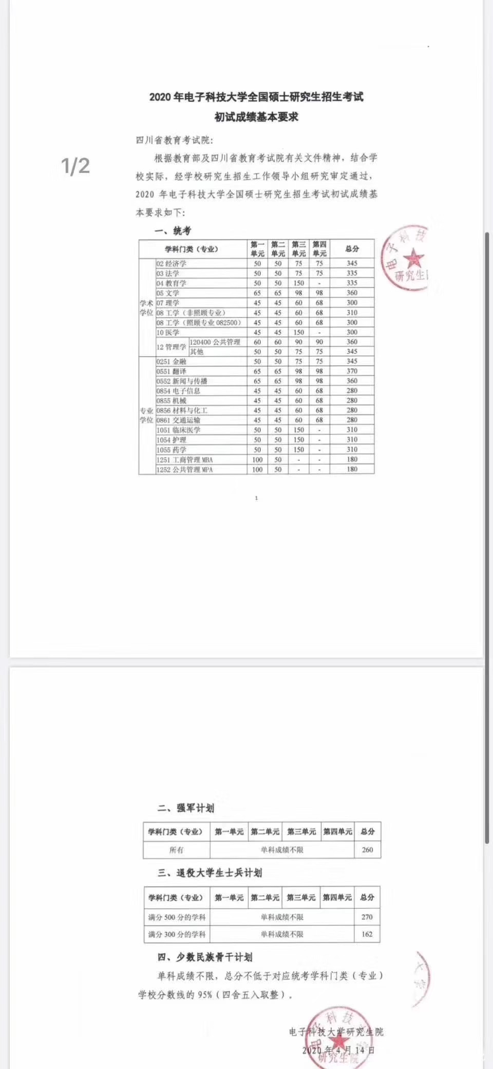 2020拼搏在线官网分数线:电子科技拼搏(中国)2020年硕士研究生复试基本分数线公布!