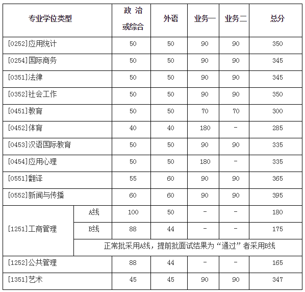 一、学校复试基本分数线(学术学位类)