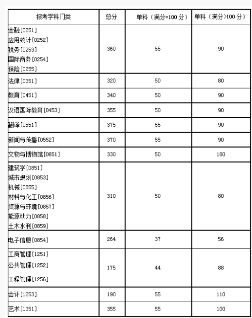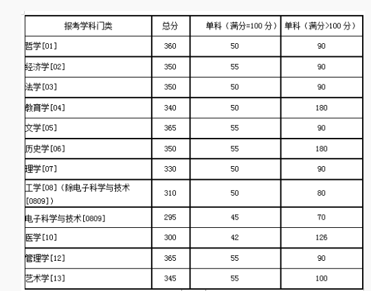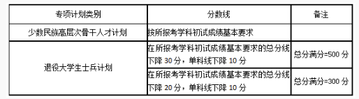 三、专项计划考生的初试成绩基本要求: