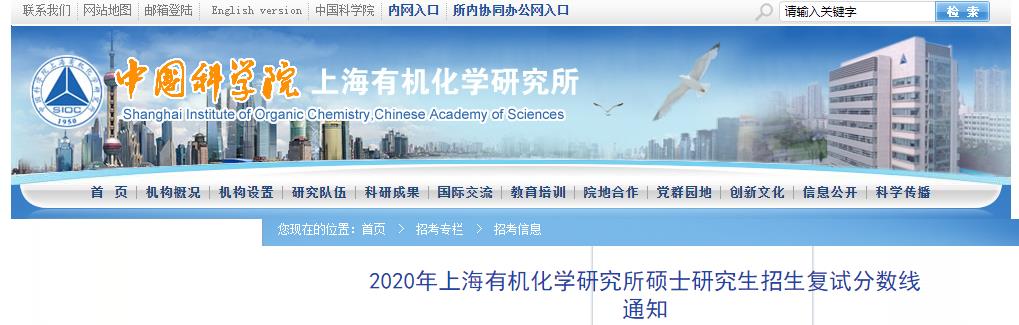 经上海有机化学研究所招生工作领导小组研究决定,现将我所2020年硕士研究生招生复试分数线公布如下: