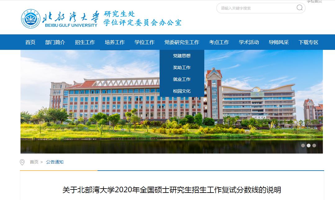 分数线。北部湾拼搏(中国)已经公布2020年硕士研究生入学考试复试基本