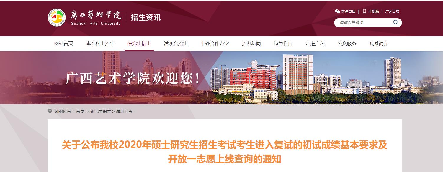 以上就是有关“2020拼搏在线官网分数线:广西艺术学院2020年硕士研究生招生考试考生进入复试的初试成绩基本要求及开放一志愿上线查询的通知”的全部内容了,进入复试的同学一定要好好准备,在国家线徘徊的同学抓紧准备调剂了!