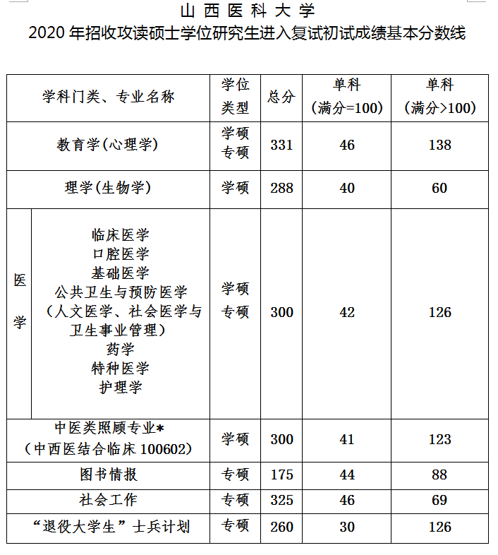 2020拼搏在线官网分数线:山西医科拼搏(中国)2020年硕士研究生复试基本分数线公布!