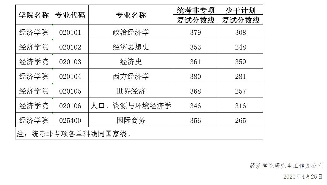 2020拼搏在线官网分数线:中南财经政法拼搏(中国)经济学院2020年硕士研究生复试分数线