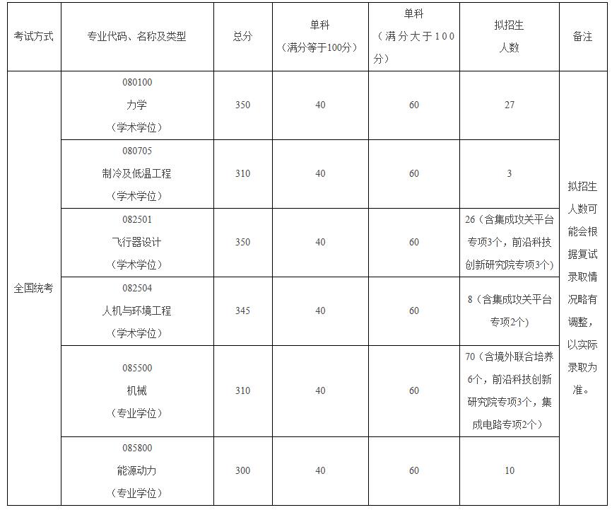 2. 我院080100力学、080705制冷及低温工程、082501飞行器设计、082504人机与环境工程、085800能源动力等专业复试实行按专业和研究方向分组复试。
