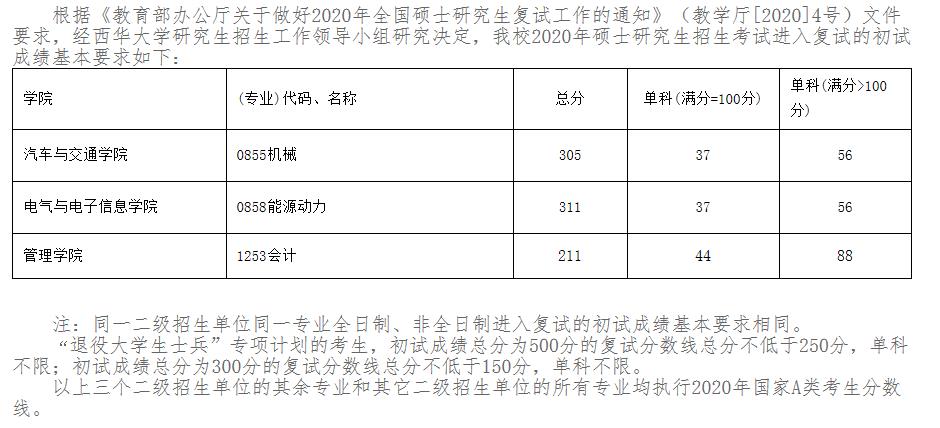分数线。西华拼搏(中国)已经公布2020年硕士研究生入学考试复试基本