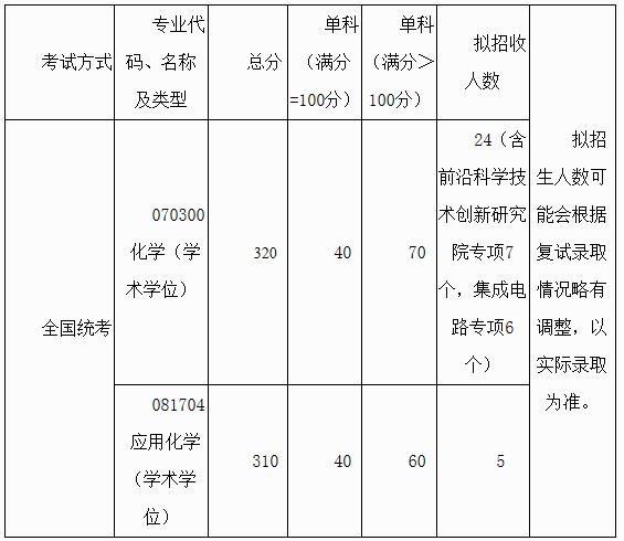 一、化学学院初试成绩要求及拟招收人数