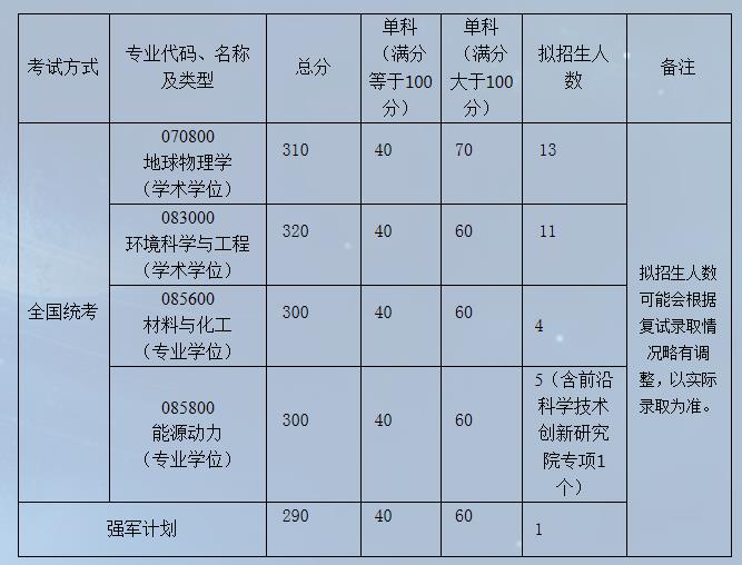 三、我院070800地球物理学(学术学位)、085600材料与化工(专业学位)、085800能源动力(专业学位)接收调剂。有关调剂要求将于5月20日左右通过学院网站公布,并同时在教育部调剂系统发布,通过教育部调剂系统进行。