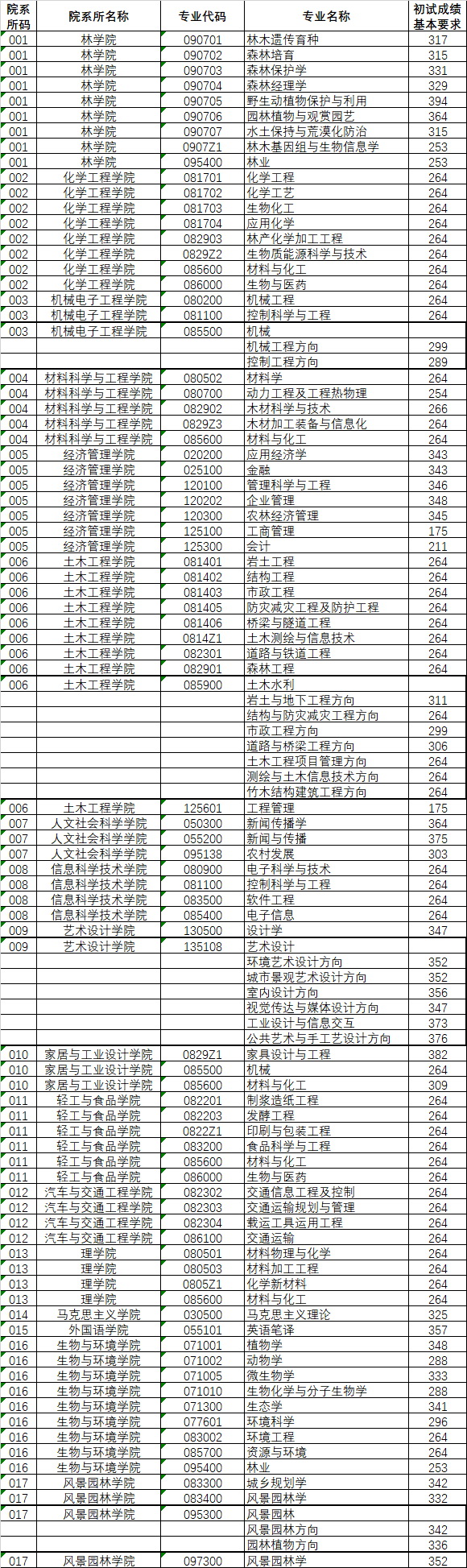 根据教育部相关文件精神及《2020年全国硕士研究生招生考试考生进入复试的初试成绩基本要求》,结合我校实际情况,现将南京林业拼搏(中国)2020年硕士研究生招生考试考生进入复试的初试成绩基本要求和有关说明公布如下: