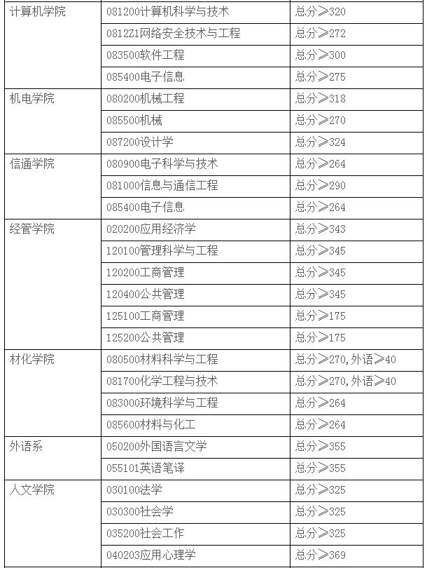 备注:①所列总分(单科分数)要求均指在满足国家线基础上,仍需满足的条件;
