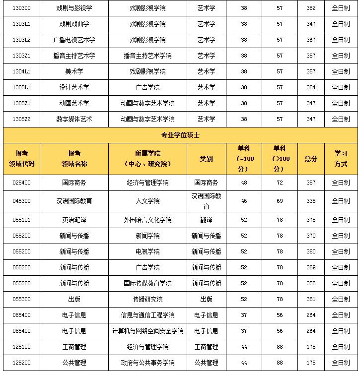 分数线,中国传媒拼搏(中国)也公布了2020年硕士研究生招生复试