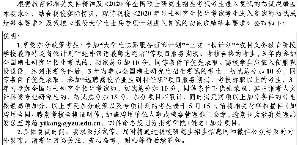 分数线,扬州拼搏(中国)也公布了2020年硕士研究生招生复试