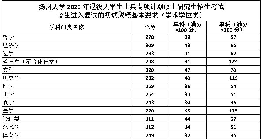 “2020拼搏在线官网分数线:扬州拼搏(中国)2020年硕士研究生招生考试考生进入复试的初试成绩基本要求”的全部内容了,进入