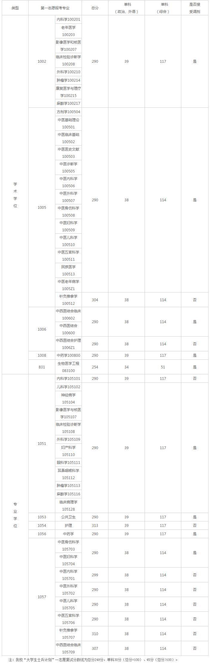 7.报考临床医学类专业学位(临床医学、中医)硕士研究生的考生可按相关政策调剂到相应专业的学术学位,报考其他专业的考生不可调剂到临床医学类专业学位;报考其余专业专业学位(除临床医学类专业外)的考生不可调剂到学术学位,但报考学术学位的可以调剂到相关专业学位。