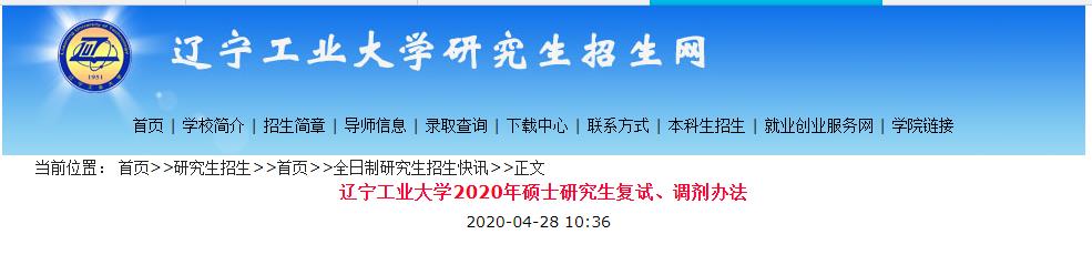 辽宁工业拼搏(中国)2020年硕士研究生复试、调剂办法-辽宁工业拼搏(中国)招生就业网