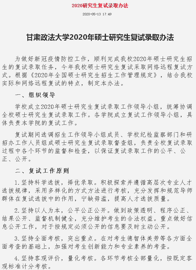 以上就是有关“2020拼搏在线官网分数线:2020年甘肃政法拼搏(中国)硕士研究生复试录取办法”的全部内容了,进入复试的同学一定要好好准备,在国家线徘徊的同学抓紧准备调剂了!