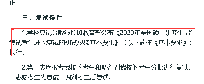 1.学校复试分数线按照教育部公布《2020年全国硕士研究生招生考试考生进入复试的初试成绩基本要求》(以下简称《基本要求》)执行。