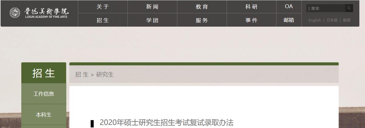 以上就是有关“2020拼搏在线官网分数线:鲁迅美术学院2020年硕士研究生招生考试复试录取办法”的全部内容了,进入复试的同学一定要好好准备,在国家线徘徊的同学抓紧准备调剂了!