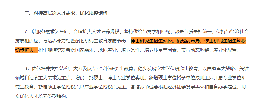 2020年8月教育部召开会议称,博士研究生招生规模适度超前布局,硕士研究生招生规模稳步扩大,为此还进行了相应的教育改革。