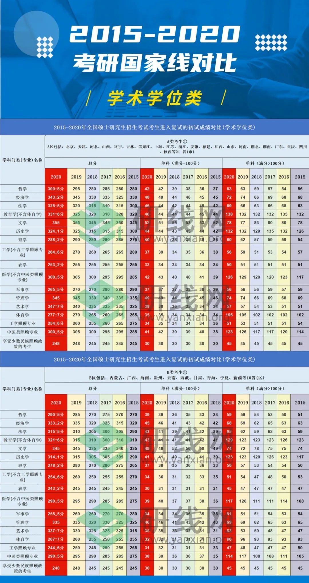 整体上这五年的分数浮动还算稳定,一般是结合当年的招生计划和报考情况来定,没有较大变动,这里分为学硕和专硕来分析: