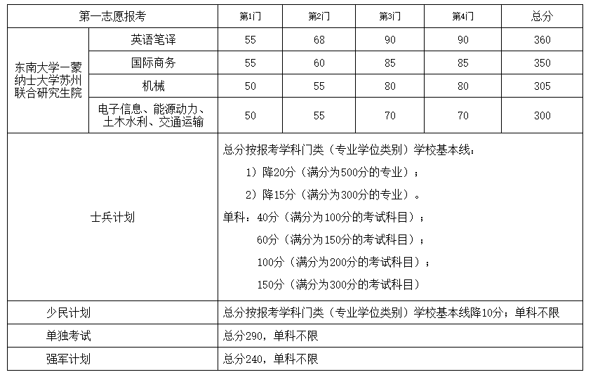 2. 统考考生(不含报考东南拼搏(中国)-蒙纳士拼搏(中国)苏州联合研究生院考生和管理类联考考生)总分超过报考院(系)专业复试线20分以上(含20分),单科(限一门)可降2分。